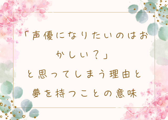 この記事では、「声優になりたいのはおかしい」と言われてしまう理由と、夢を持つことの大切さについて解説します。