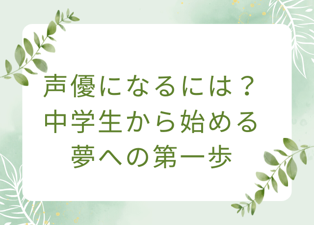 では、中学生から声優を目指す場合、どんな準備をすればいいのでしょうか。この記事では、中学生が声優になるためにできることや、進路の考え方について詳しく解説します。